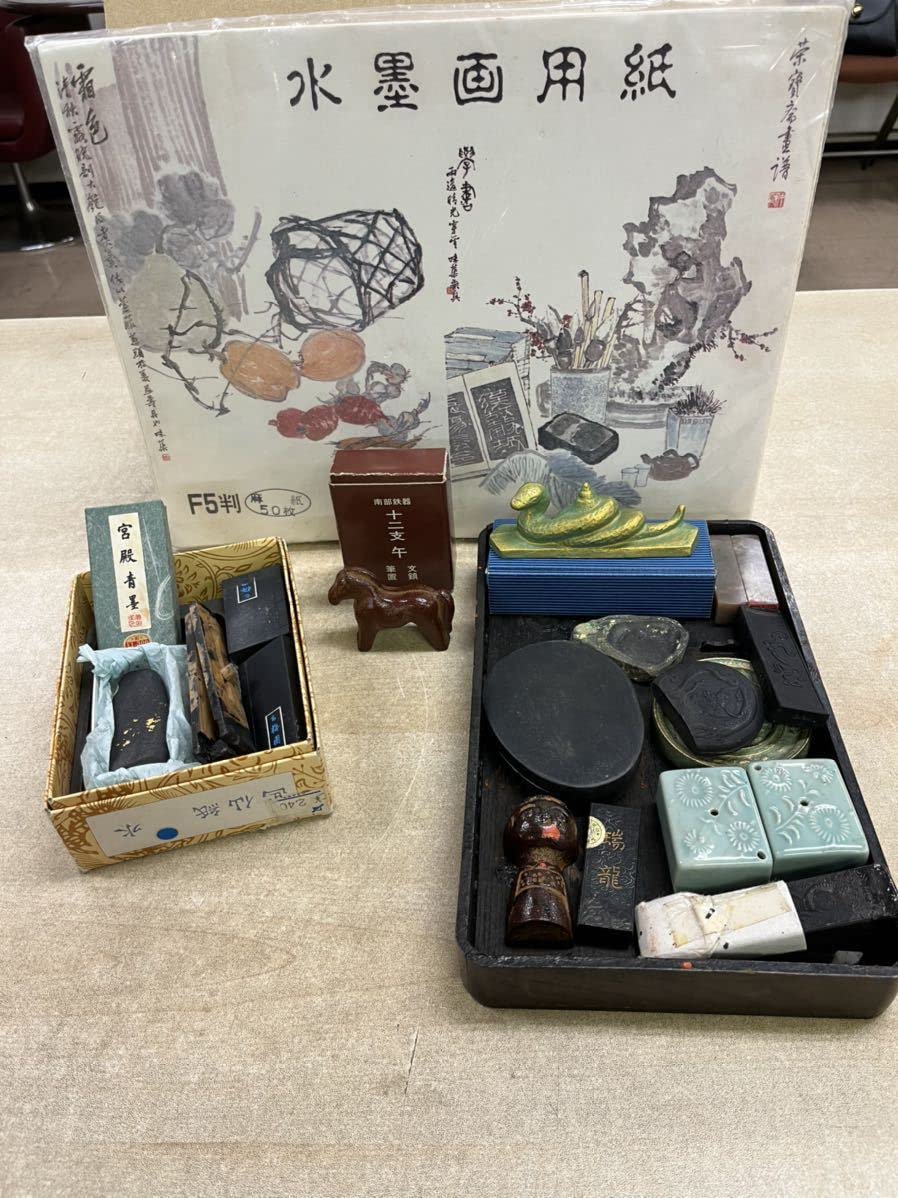 - 美術品・アンティーク・コレクション > 工芸品 > 書道セット・雨畑硯(蓋付き)、南部鉄の水差し、筆、墨、文鎮入りです。 Amazon.co.jp: R0201 書道セット 水墨画用紙 文鎮 筆置 南部鉄器