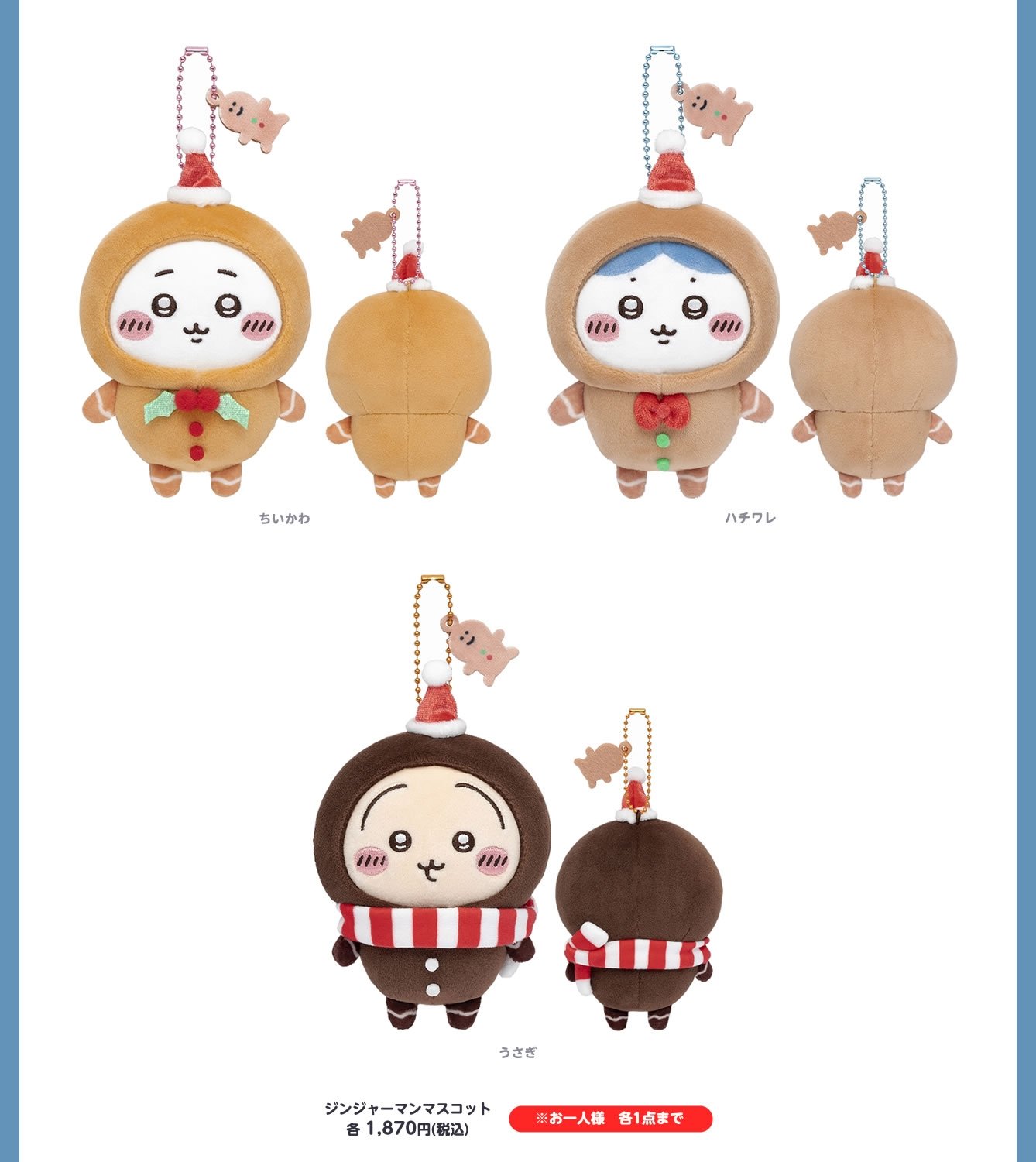 | 商品の特徴 | ちいかわジンジャーマンマスコット12個セットクリスマス。ちいかわジンジャーマンマスコット12個セットクリスマス。ちいかわ クリスマスプレゼント ジンジャーマンマスコット。ちいかわ より ジンジャーマンBIGぬいぐるみがプライズで登場。ちいかわ ジンジャーマンマスコット 12個セット クリスマス | ||