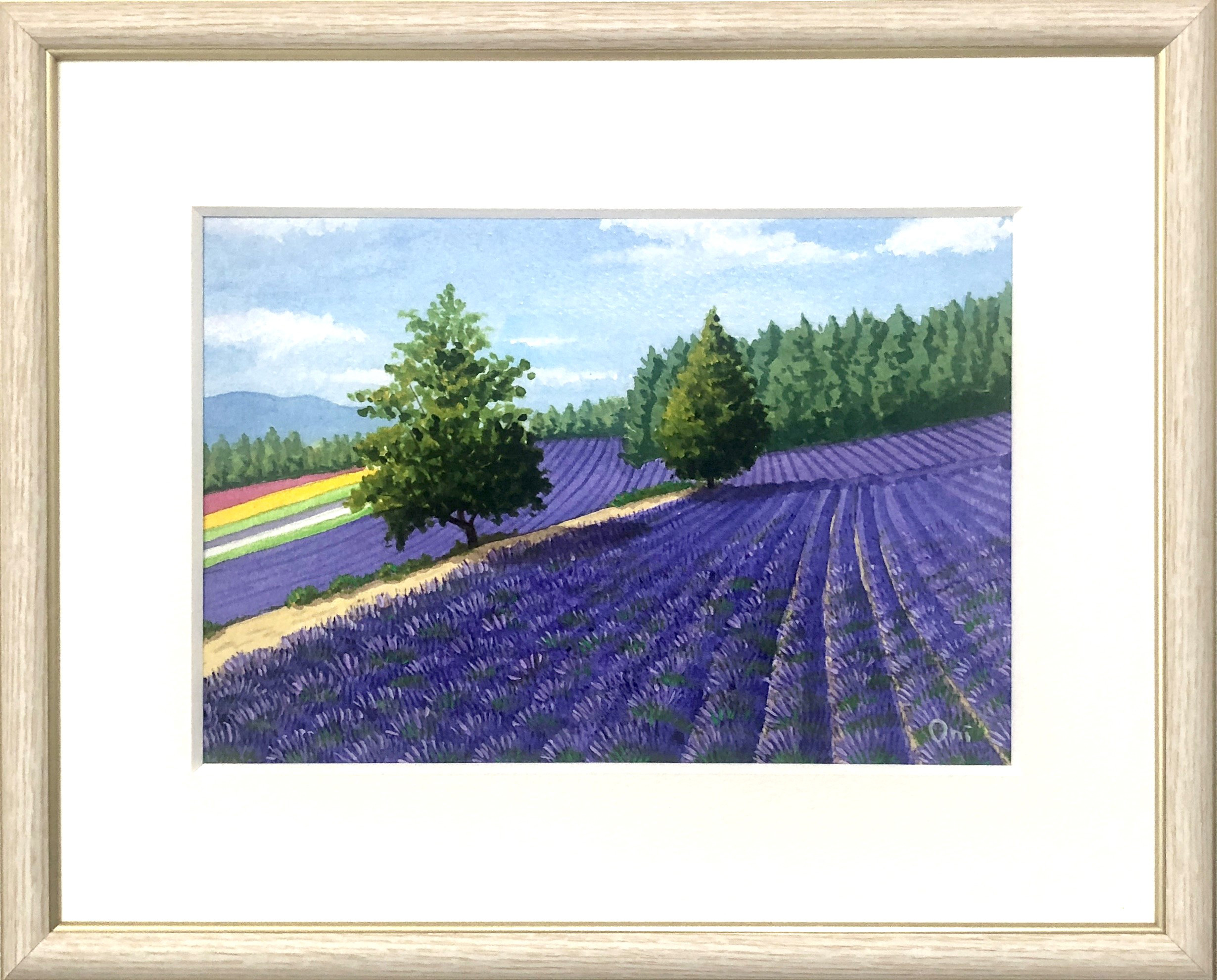 透明水彩画 原画 「ラベンダー・遥かなる大地」額縁付 F10サイズ 風景画 透明水彩画 原画 「ラベンダー・遥かなる大地」額縁付 F10サイズ 風景
