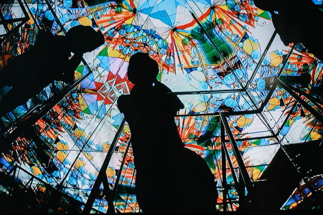 超レアマジカルミラーガラス大きな変形深鉢 孔雀 カーニバルガラス 神秘的な美しさ 煌めく巨大万華鏡と光と色が織りなすガラス作品を体感 三河工芸ガラス