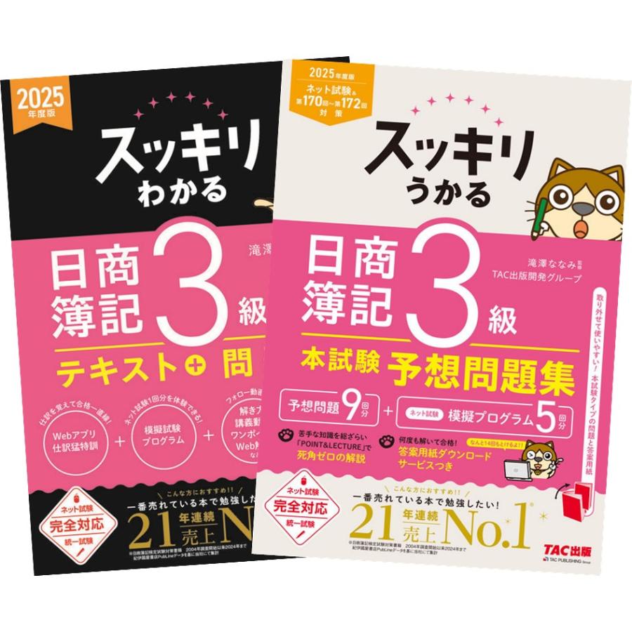 | 商品の特徴 | 2025年度版 スッキリわかる・うかる 日商簿記3級 [テキスト+問題集。合格するための過去問題集日商簿記3級 TAC出版(著) - TAC株式会社出版。2024年度版 日商簿記3級 まるっと完全予想問題集 | 資格本のTAC出版。TACによる簿記3級の講義(全12回)が収録されているDVDが付属しております。合格テキスト、合格トレーニングには書き込みございません。本試験問題集は付属していません。合格テキスト日商簿記3級 | TACの高校生向け資格教材。このセットだけで簿記3級に確実に合格することができます。超音波検査技術 第38巻5号〜第49巻第6号 参考書。専用化学教材。講義録レポートには書き込みございます。TAC 税理士 消費税法 基礎マスター上級、直前期 2024。【値下げ可能】TAC 国税徴収法 基礎マスター・速修コース。 | ||